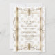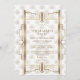 Excelente branco charmoso Gatsby Art Deco 1920 Casamento design único e romântico com o Excelente Roaring 20s Gatsby vintage faux gold ornamental em um plano de fundo suave de padrão delicado e dourado. Use a ferramenta Personalizar para adicionar suas informações. Para obter itens correspondentes, visite minha Coleção de Gatsby do Excelente Dourado Charm White.