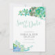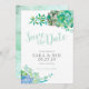 Linda e elegante aquarela suculenta salva a data com caligrafia moderna e fontes tradicionais.