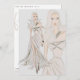 Um modelo de moda loiro pintado à mão vestindo um vestido bege fluido em um concurso de caridade na moda