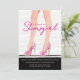 This exquisite and chic design is created to celebrate the bride in the moments leading up to her wedding, bringing a glamorous, sophisticated, and personality-filled atmosphere. The illustration features long, elegant showgirl legs highlighted by stylish pink platform heels, set against a deep and refined black background. This striking color contrast creates a powerful, feminine, and modern aesthetic that evokes luxury, spectacle, and a night-inspired style connected to exclusive wedding celebrations.
