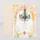 Designed for couples seeking an elegant, timeless wedding with a classic European touch, this invitation stands out for its harmony between ornamental elements and nature. The chandelier introduces a distinguished focal point, while the arch enveloped in greenery adds freshness, movement, and a romantic air, creating a magical and memorable atmosphere. The arrangement of elements guides the eye and generates a sense of depth and elegance, reinforcing the wedding’s visual identity. The design allows you to personalize the product, adapting it to your needs while maintaining coherence and style.