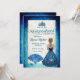 Elegante vintage, fã de mão azul real, moça de aquarela em vestido de bola Quinceañera convidado design.