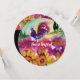 Paisagem colorida da Toscana com campos de flores e galo preto em cores amarela, fuchsia vermelha, verde, roxo, azul. Pintura acrílica na canvas.Legal, design artístico para festas de férias de Verão, reuniões familiares, aniversário, festas de aniversário ou qualquer evento que você queira!