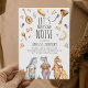 Convite para Aniversários de criança bonitos com o título "Vamos Faz Algum Ruído", três animais africanos de cor aquosa (zebra, hippo e girafa), instrumentos musicais e notas musicais. O modelo moderno é divertido e fácil de personalizar com seus próprios detalhes de eventos.