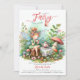 Uma ilustração encantadora com aquarela, apresentando uma doce fada num pequeno jardim encantado com cogumelos e flores silvestres, bebendo de uma xícara de chá, enfeita este elegante e adorável convite para chá de menina com um tema de festa de jardim de fada. Perfeito para comemoração da primavera, eventos de Páscoa, fête de jardim de verão, chá de fraldas piquenique charcado ou para comemoração do ano inteiro em homenagem a uma mãe que ama a floresta encantada, tema de fada.