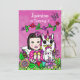 Bonito conto de fadas brancas, estilo conto de fadas preto, cabelos negros, casianos ou asiáticos. Convites de aniversário com estilo arte folk, esboçados manualmente, fadas, flores e borboletas. Púrpura, rosa, vermelha, verde limão e todos os tipos de cores brilhantes bonito!