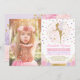 Comemore o aniversário da sua garotinha com este convite de festas encantador.Este design mágico apresenta uma pequena fada cintilante, cor-d-água rosa pincelada e rosas roxos e borrifos de confetti e brilho.