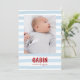 Célébrez l’arrivée de votre petit trésor avec le faire-part "Gabin", un modèle au design à la fois moderne et délicat. Ses rayures élégantes bleu et son texte rouge apportent une touche graphique douce et pleine de fraîcheur, idéale pour annoncer une naissance avec style et tendresse.