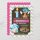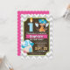 Convidado de fada rosa e azul bonito para a garota. Convidar apresenta cinzas e padrão de diafragma branco, casa de cogumelo azul e cor-de-rosa.