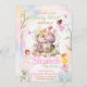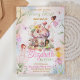 Convide todos para a sua primeira festa de aniversário de fadas com modelo de convite de fadas pastel. Este convite de aniversário de fadas pastel apresenta quatro fadas diferentes com sua casa de floresta com verde e flores em um design de convite ao estilo pastel moderno.