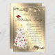 Um convite elegante para festas de férias, com pinheiros brancos e chapéu de Papai Noel em fundo de ouro. Estes belos convites de Natal são perfeitos para convites de festas de janto de Natal, convites para troca de presentes de Natal, angariadores de fundos de Natal, convites para bolas de férias e outros eventos realizados durante o mês de dezembro. Use apenas os campos modelo para adicionar suas próprias informações de evento.