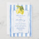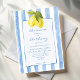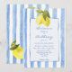 Convites de casamento modelo azul listrado desenhado à mão limões italiano moderno funky praia, convites de casamento retrô vintage, convites de casamento listras azuis e limões, convites de casamento italiano, convites de casamento de limão, convite de casamento desenhado à mão funky, convites de casamento de verão, conjunto de convites de casamento