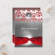 CONVITE FAIXA VERMELHA BRANCA DAMASCO PEDRA MONOGRAMA