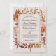 Um belo convite para o casamento em cor de outono e outono. O convite é enquadrado com um buquê colorido de flores em punhos, pintas macios, branco e castanhos. Todos os campos podem ser editados. Este design tem um fundo rosa-claro. Consulte nossa coleção para obter produtos correspondentes.https://www.zazzle.com/collections/autumn_terracotta_rust_boho_floral_wedding_suite-119048813946979010