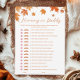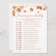 Adicione diversão ao seu chá de fraldas de outono com este Cartão de Jogo Bingo de Chá de fraldas de outono Personalizado! Uma atividade perfeita para os hóspedes, este cartão de jogo combina temas confortáveis de chá de fraldas de outono e apresenta designs sazonais charmosos. Ideal para qualquer pessoa que procure ideias sobre o tema do outono, ideias sobre o chá de fraldas ou ideias sobre o chá de fraldas de outubro. Excelente para as ideias do chá de fraldas de outono e para complementar qualquer chá de fraldas de outono ou temas do chá de fraldas de outono com um toque festivo.