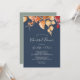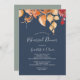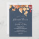 Este outono deixa marinho azul e o convite para janto de ensaio de burgundy é perfeito para um ensaio de casamento de outubro. A design rusticidade moderna apresenta uma mão espantosa pintada de folhas de outono de aquarela em tons coloridos de amarelo, laranja queimado e vermelho queimado que pop sobre um fundo azul marinho.