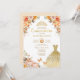 O convite perfeito para a quinceañera da sua filha está finalmente aqui! Este convite cômico e adorável da quinceañera apresenta elegantes flores laranja-aquarela, abóboras rústicas, um vestido de princesa reluzente, uma tiara cintilante e duas borboletas fluentes. Clique no botão "personalizar mais" se quiser reorganizar e formatar o estilo e a posição do texto.
