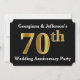 Este design de convite apresenta o número ordinal "70º" com uma aparência semelhante a ouro falso. Também apresenta nomes personalizados. Poderia ser usado para a festa de aniversário de casamento de setenta anos de um casal.