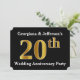Este design de convite apresenta o número ordinal "20º" com uma aparência semelhante a um dourado falso. Ele também apresenta nomes personalizados. Poderia ser usado para a festa de aniversário de vinte anos de casamento de um casal.
