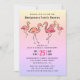 Convide seus convidados de reunião familiar em estilo com este cartão plano tropical. Este design apresenta flamingos cor-de-água rosa sobre um fundo de cor rosa e roxo amarelos. Personalize com todos os seus detalhes de celebração em uma tipografia negra moderna. Projetado pelo renomado artista Tim Coffey.