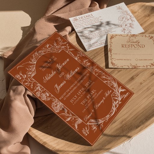Convite Fancy Burnt Orange Floral Boho Terracotta Wedding