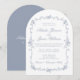 Convite Fancy Dusty Blue Floral Boho Chic Arched Wedding