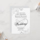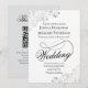 This beautiful wedding invitation features an elegant silver and white design with ornate faux foil curls and swirls in the corners. The word "wedding" is written in fancy script lettering with an elaborate flourish on the end of the word. Simple, stylish, posh, and glam, this invitation is sure to make a lasting impression, and is a wonderful way to invite your family and friends to share in your joy on your special day.