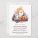 Bonitas crianças de aquarelas convite para festas de Halloween com fantasmas engraçados e abóboras.