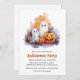 Bonitas crianças de aquarelas convite para festas de Halloween com fantasmas engraçados e jack o’lanterns.