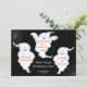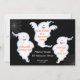 Convite de Halloween com 3 fantasmas em fundo preto. Gráficos http://www.delightful-doodles.com/