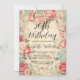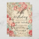 Fantasy floral 50º convite de aniversário com rosas vermelhas e cor-de-rosa e flores azuis em um fundo de papel com tema antigo. Modelo personalizado que você pode personalizar com seus detalhes de festa ou celebração.