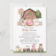 Invite friends and family in style and set the tone for your special day with this charming baby shower invitation. Design features farm animals (cow, horse, sheep, pig, rooster, chicken), brown barn and brown tractor on white background.