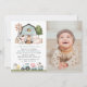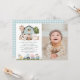 Invite friends and family in style and set the tone for your special day with this charming birthday invitation. Design features farm animals (cow, horse, sheep, pig, rooster, chicken), blue barn and blue tractor on white background.