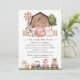Invite friends and family in style and set the tone for your special day with this charming birthday invitation. Design features farm animals (cow, horse, sheep, pig, rooster, chicken), brown barn and brown tractor on white background.