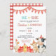 Farm Party He or She Gender Reveal Invitation, Gingham Farm Animals Gender Reveal Invite, Editable Animals Theme Gender Reveal Invite