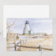 Experimente uma pálida manhã de inverno na costa de Massachusetts nesta pintura em aquarela calmante do Plymouth Light no Inverno. Usando branco limpo, tons cinzas sutis, amarelos pálidos e azuis frios, esta pintura em aquarela recria uma vista gelada de meio de inverno da torre icônica do Gurnet Light. Originalmente construído em 1768, o Plymouth Light foi um dos dois faróis no Gurnet Point. A torre octogonal em forma de pirâmide retratada foi construída em 1842 após o colapso das torres anteriores.