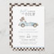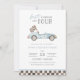 Fast, Curious & Four Racing 4th Birthday Invitation, Blue Race Car Party