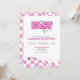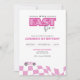 Race Car Birthday Invitation – It's a Fast One - Racing Theme First Birthday Party Invite with Checkered Pink Flag Design