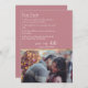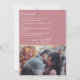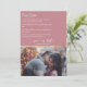 Este estilo moderno e minimalista que salva a nossa data para o convite de casamento apresenta um fundo rosa empoeirado. Uma lista de fatos divertidos sobre a noiva e o noivo ou casal são impressos no topo, com uma amostra de fotografia do casal no fundo. Uma linha de ouro separa as partes superior e inferior. Você pode personalizar o anúncio para incluir sua própria foto ou imagem personalizada. É uma maneira simples e única de entreter seus convidados e deixá-los ver um lado pessoal de você.