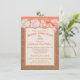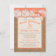 Convite FAUX Burlap Ivory Lace, Orange Chá de fraldas Invi