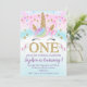 Convite Faux Dourado Um primeiro aniversario Unicorn Rainb