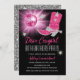 Coloque sua festa no estilo retrô dos 70 anos com este design preto rosa e prateado brilhando e bola rosa de espelhamento disco "Disco Cowgirl 80". Design composto por Holiday Hearts Design (direitos reservados).