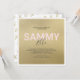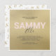 Este convite de festa de bat mitzvah quadrado apresenta seu nome em uma fonte moderna e negrita com o seu nome do meio em uma tipografia manuscrita trendy sobre um fundo dourado falso. O cartão de convite reverte para um design de carta manuscrita complementar xo xo. Uma escolha fofa e simples para a festa estilosa da sua garota. Para ver mais do conjunto de convites contemporâneos, visite DoTellABelle no Zazzle.