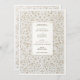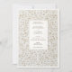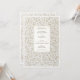 Este convite para o casamento de eternos captura a grandeza do local de marfim esculpido à mão através de um design gravado ultra detalhado. O elegante padrão barroco floral rodeia seus detalhes de casamento em simetria graciosa, oferecendo a riqueza visual da papelaria a laser de ornamentado sem o manejo delicado. A paleta de cores macia e esticada melhora o sentido de profundidade e beleza escultural, enquanto o painel central apresenta uma tipografia refinada numa mistura de estilos clássicos de serifa e escrita à mão. O reverso da carta continua o motivo com um fundo totalmente embelezado — perfeito para adicionar um toque luxuoso a qualquer suíte formal de casamento. Uma bela escolha para casamentos tradicionais, românticos ou luxuosos, este convite traz textura, elegância e encanto histórico para o seu dia mais importante.