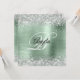 Convite Faux Shiny Silver Glitter Pale Mint Foil Monograma