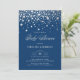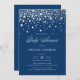 Convide convidados para o seu evento com este convite de chá de fraldas personalizável. Ele apresenta pontos falsos de configuração de folha prateada num fundo azul. Personalize adicionando seus detalhes. Este convite para chá de fraldas azul de marinho é perfeito para qualquer tema ou estação de chá de fraldas.