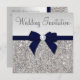 Convites de casamento elegantes, personalizados, prateados e azuis marinhos escuros, com um lindo gráfico de sequências impressas em prata, com imagens de prata, com joias, joias, padrão de brilho, arcos azuis e azuis marinhos escuros e sofisticados e fitas e diamantes digitais bonito misturando joias e texto de cinza escuro em um fundo gradiente prateado. Observe que: Todos os convites no Zazzle têm imagens impressas em formato plano - não arcos reais, diamantes ou sequências. Estes convites elegantes, brilhantes e glamourosos para casamentos são decorados de ambos os lados. Bonitos, na moda, quites, modismos, modernos, reluzentes e encantadores convites. O texto, a fonte e a cor da fonte podem ser personalizados. Se precisar de ajuda para personalizar seu produto, entre em contato comigo pela loja. Ficarei feliz em ajudar. Tenho produtos correspondentes para casamentos na minha loja.