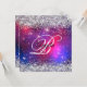 Um elegante monograma de 60 anos para ela. Brilhante prateado com faíscas contra uma foto do espaço celestial preto, roxo e azul. O monograma de caligrafia em preto-e-branco rico e todo o texto de evento especial podem ser personalizados. Todos os elementos brilhantes desta design de menina moderna são gráficos digitais. Você pode transferir o design monograma na frente para um presente pequeno ou médio correspondente.