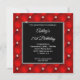 Crie seu próprio convite para celebrações de aniversário de na moda milestone para seu rico. A imagem gráfica digital de fundo decorativa apresenta um brilhante design de diamante brilhante e vermelho faxes brilhantes com tufo. No centro da frente há um quadrado preto com borda prateada ombre sua informação de convite personalizada. Mova ou exclua o gráfico cintilante branco sujo. Personalize os estilos de fonte elegantes, cor e tamanho. Fabuloso convite para o seu melhor amigo.