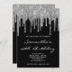 Convite Faux Sparkly Silver Glitter Drives Black Birthday